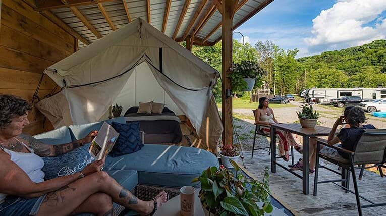 Full hook-ups and a parking spot just feet from the Meadow River are perfect for any size RV or trailer.